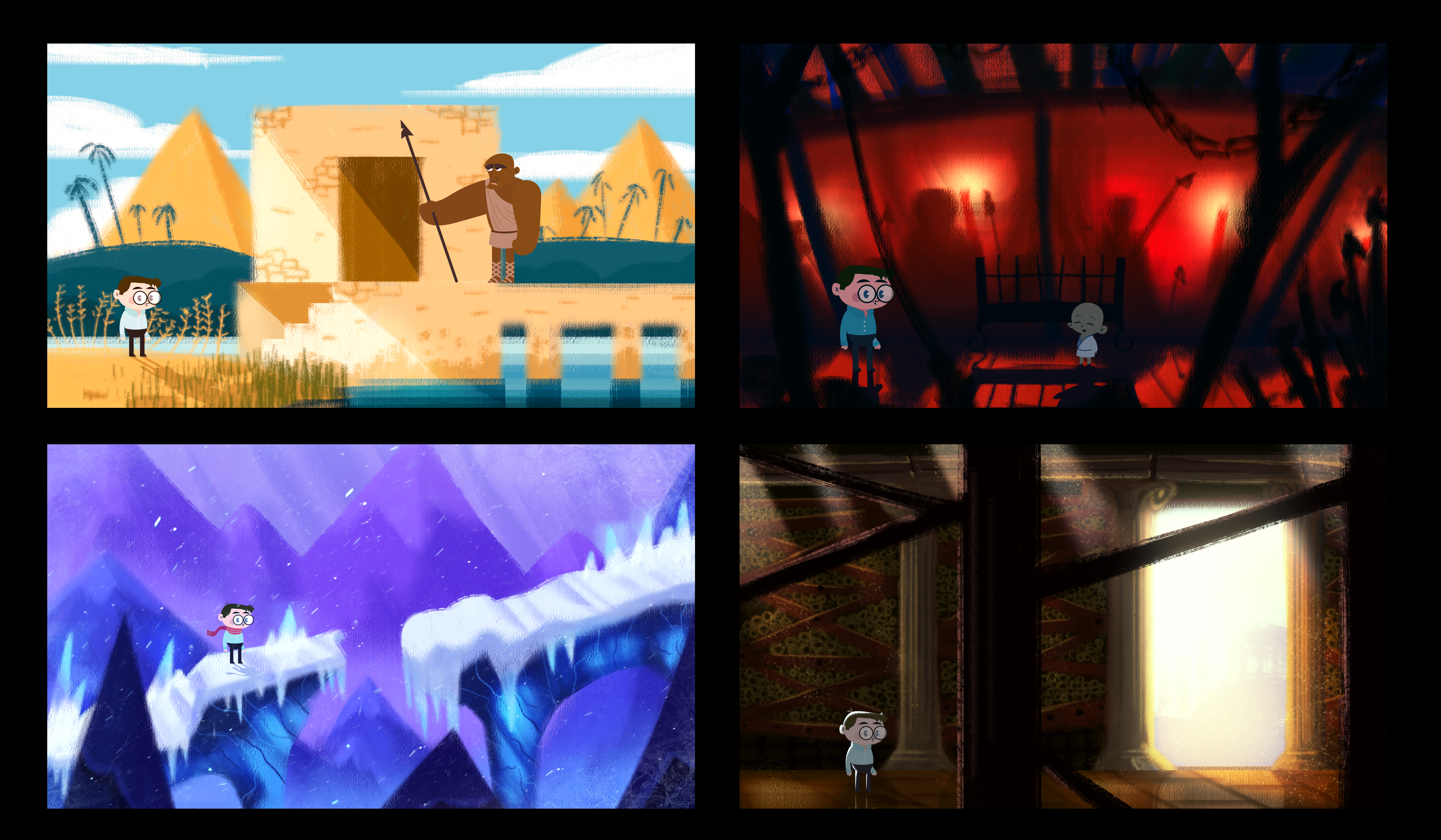Here I expose some of my visual development projects. My intention is always trying to experiment with color, shapes, composition and styles, in a way to describe different universes and situations. I hope you enjoy it!
